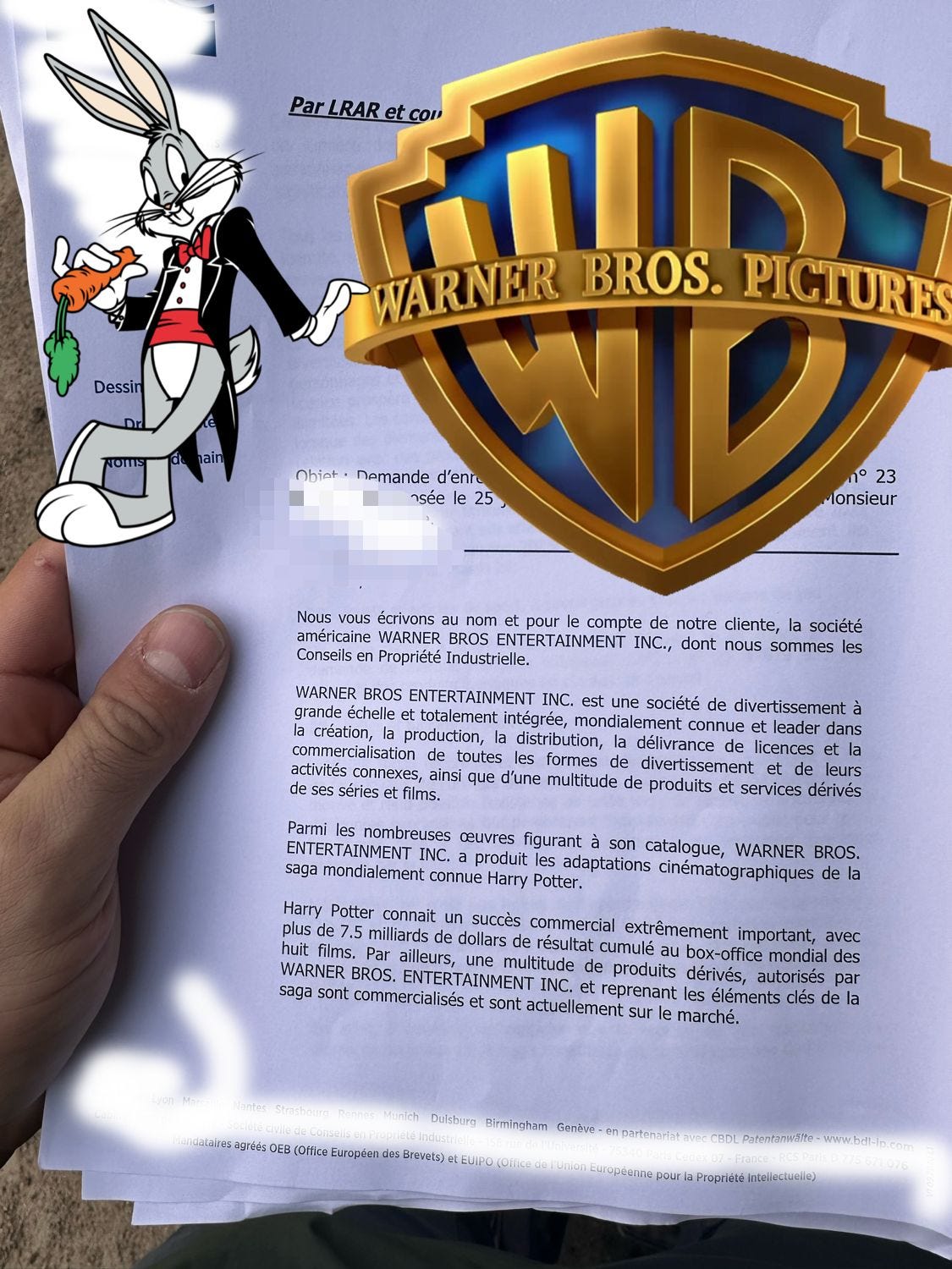 Nous avons reçu un courrier de la Warner.