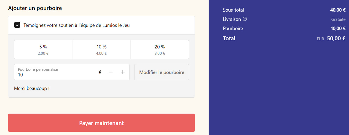 Au moment de payer en ligne, on vous proposera de donner un pourboire.