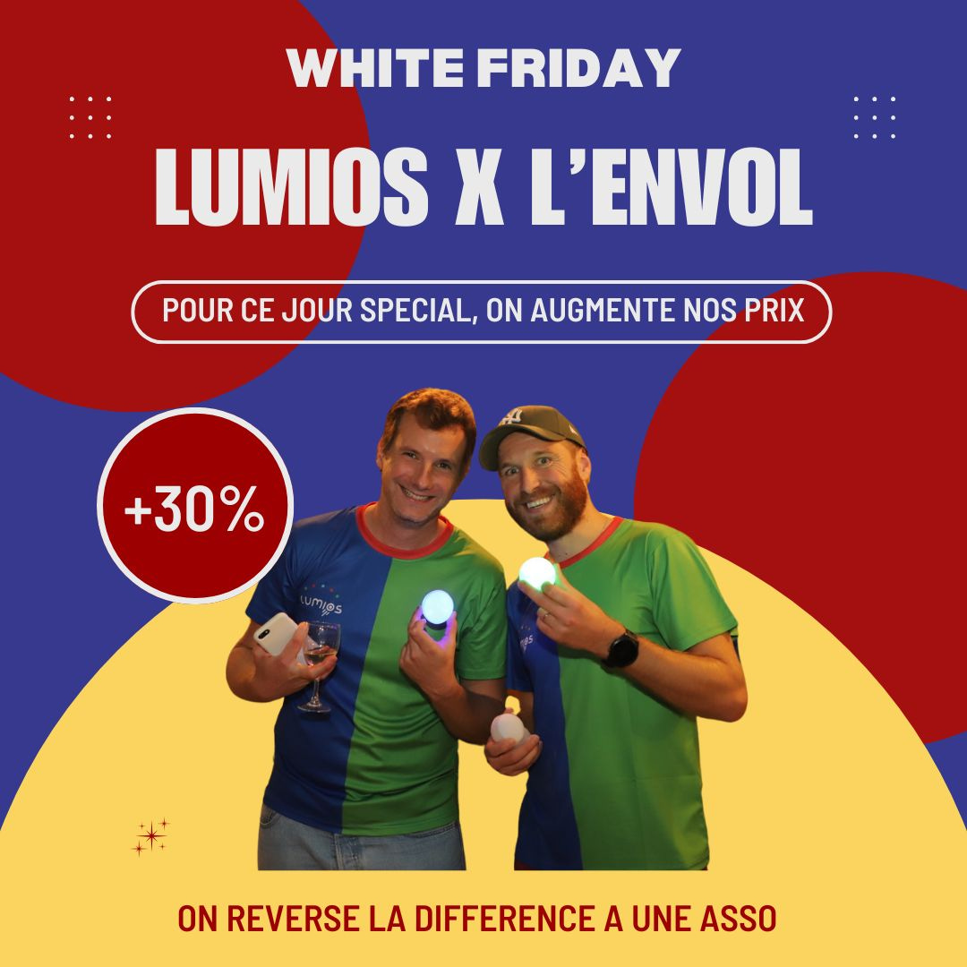 Double belle action si vous achetez un Lumios le jour du black friday (et pendant le Giving Tuesday) :