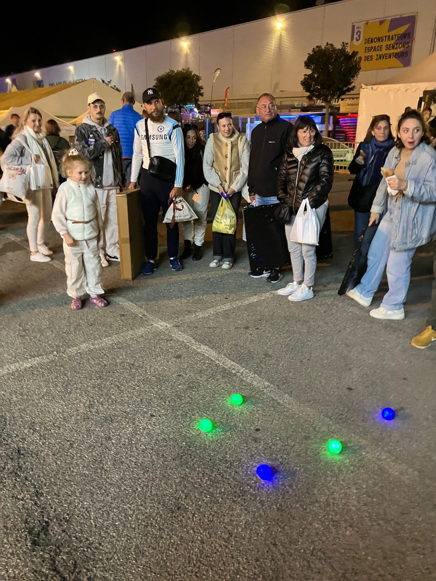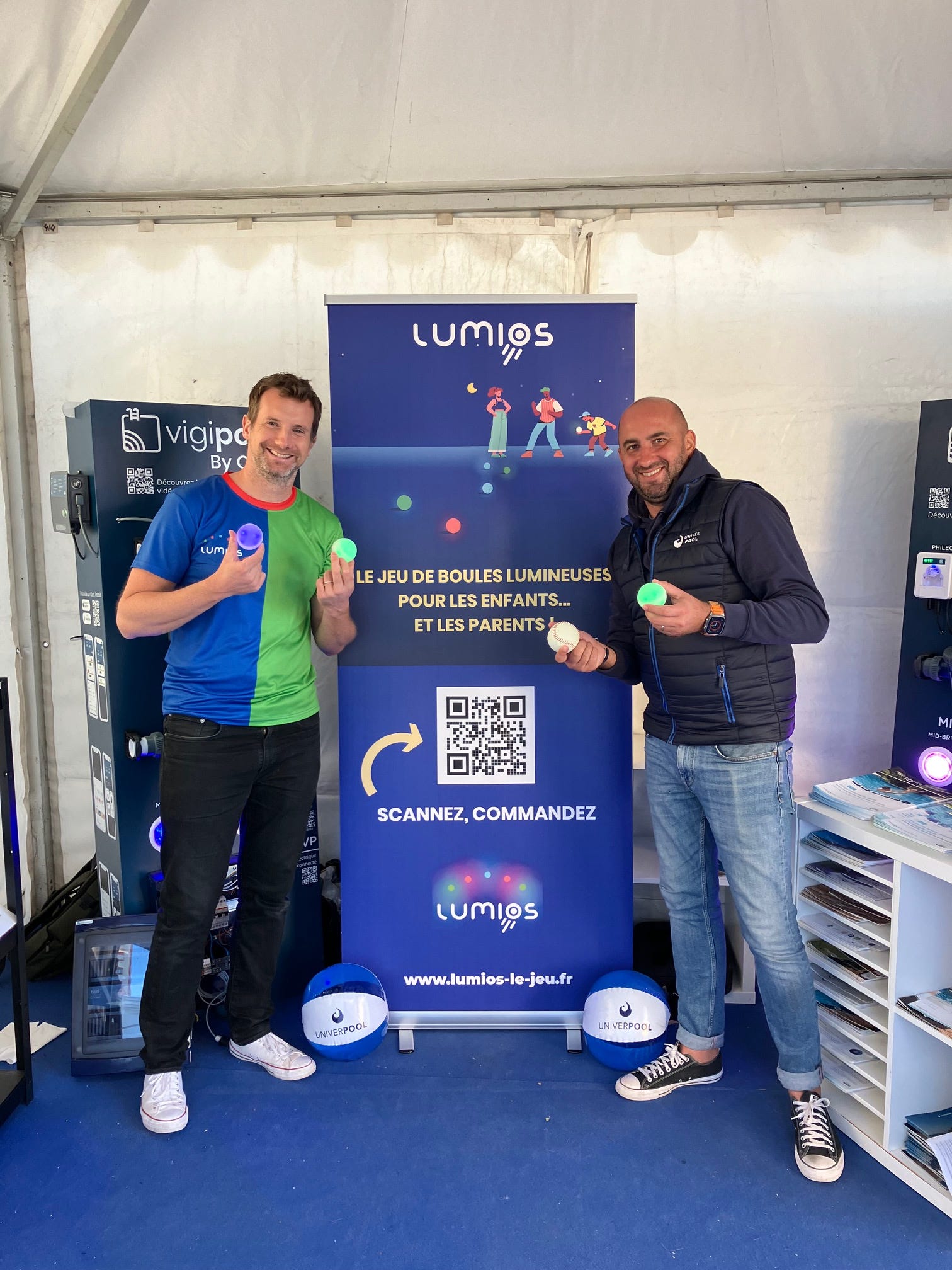 Grâce à un ami, on a pu profiter de son stand de piscine pour afficher et montrer nos boules.